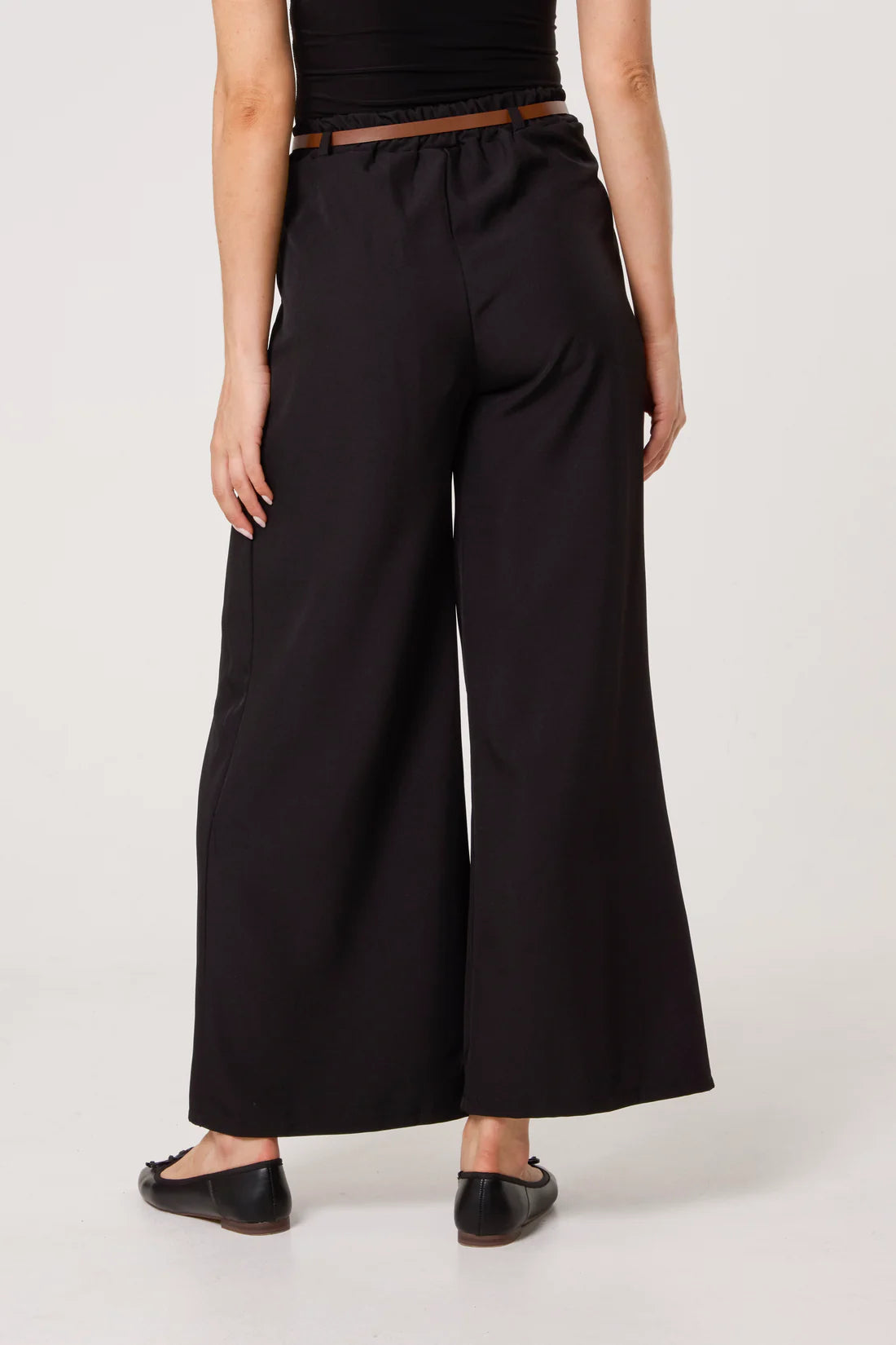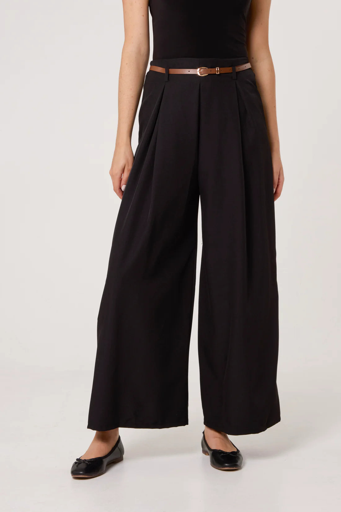 KATIE PLEATED FRONT BELTED PALAZZO TROUSERS