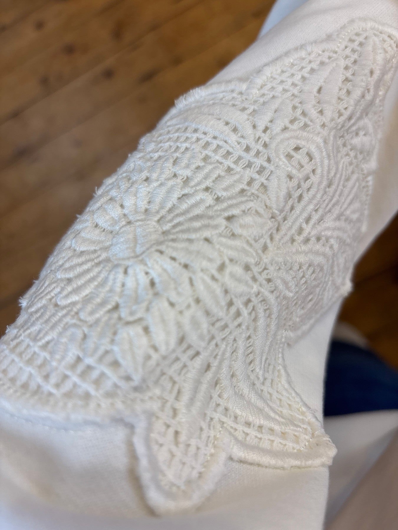 WHITE EMBROIDED SLEEVE SWEATSHIRT